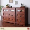 『Radom』チェスト(幅101cm)は、どこか懐かしくレトロで落ち着いた雰囲気を漂わせるチェストとなっております。あたたかみのあるアンティーク調デザイン。収納力バツグンでリビング収納としてお使いいただけます。ワイドサイズなので、家族でお使いいただけるサイズ感です。また、引き出しの上段の前板はガラスになっているので、圧迫感がなく見せる収納としてお楽しみいただけます。天然木本来の風合いも感じることができ、レトロで落ち着いた空間を演出させるチェストです。