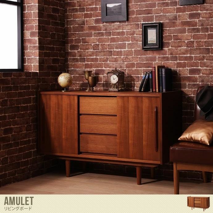 『Amulet』リビングボードは、美しい木目とアンティークデザインが上品で落ち着きと高級感のあるリビングボードです。天然木チーク材が贅沢に使用されており、木の温もりがあふれるリビング空間になります。幅は使いやすい120cm。あまり場所を取りたくないけど収納力は欲しい、リビング周りをスッキリさせたい、という方にオススメです。