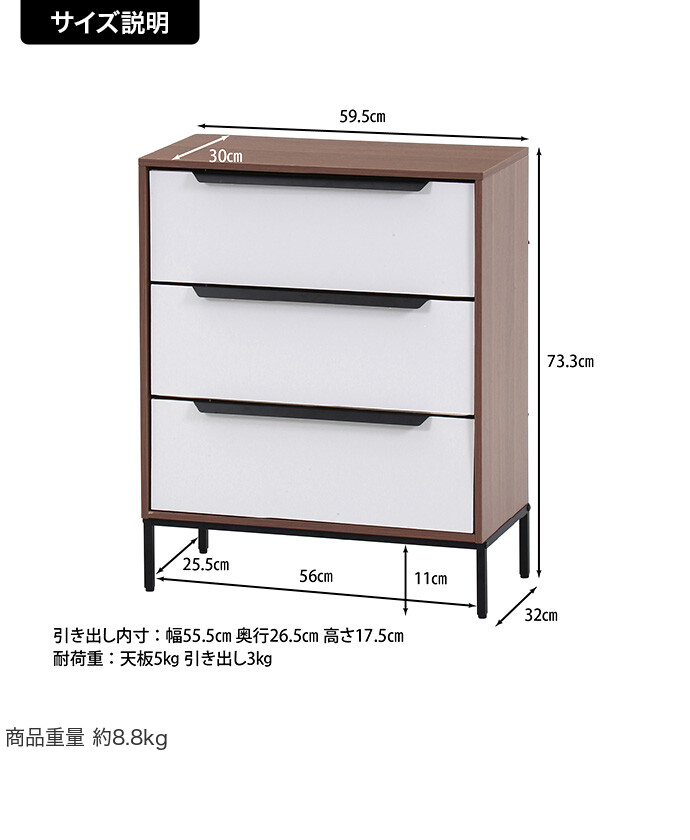 【耐荷重】天板:約5kg、引き出し:各約3kg