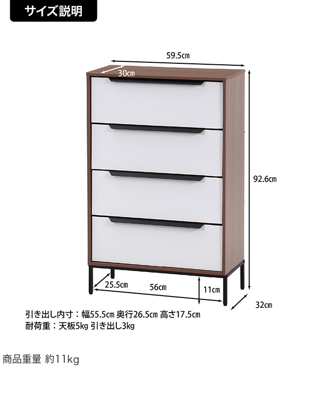 【耐荷重】天板:約5kg、引き出し:各約3kg