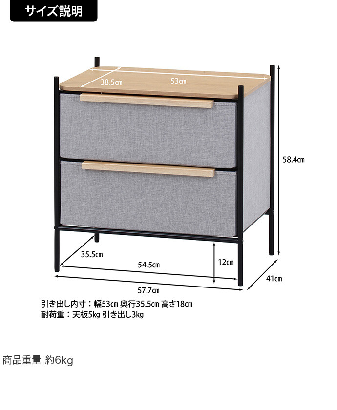 幅57.7 ファブリックチェスト 2段 リネン風 衣料収納 チェスト タンス おしゃれ おすすめ 安い 大容量 軽量 ファブリック 引き出し 組立簡単 リビング ワンルーム 一人暮らし キャビネット ランドリーラック 収納ケース グレー