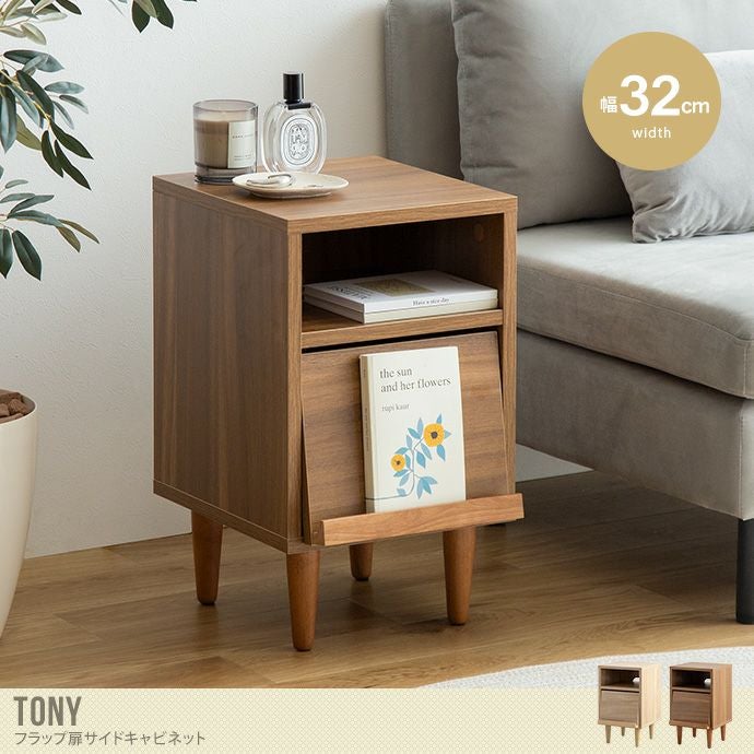 【送料無料】Tony トニー 幅32 サイドキャビネット サイドテーブル 収納付き サイドチェスト サイドボード 収納家具 棚 スリム 木製 フラップ扉 コンパクト リビング 寝室 ベッドサイド ソファーサイド 横 ベッド脇 コード穴 ナチュラル