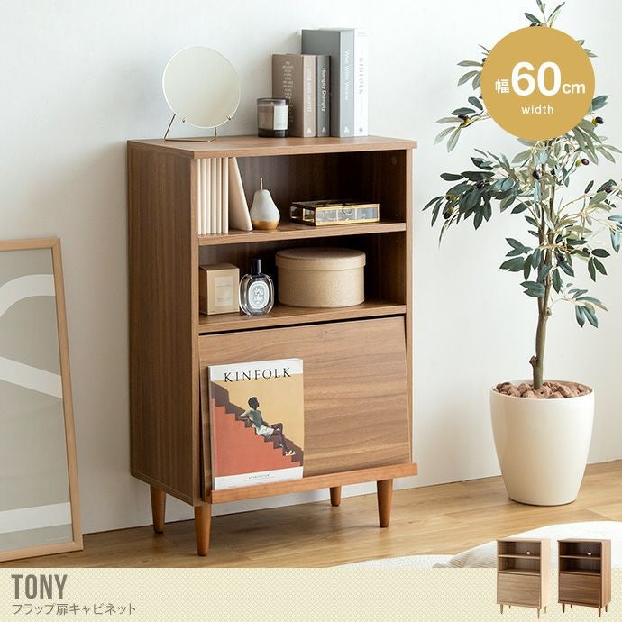 【送料無料】Tony トニー 幅60 キャビネット サイドボード 収納 棚 カウンター シェルフ ラック キッチン リビング オフィス 洗面所 フラップ扉 可動棚 スリム 薄型 本棚 漫画 コレクション ディスプレイ 飾り棚 一人暮らし 小さい ミニ ナチュラル