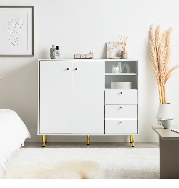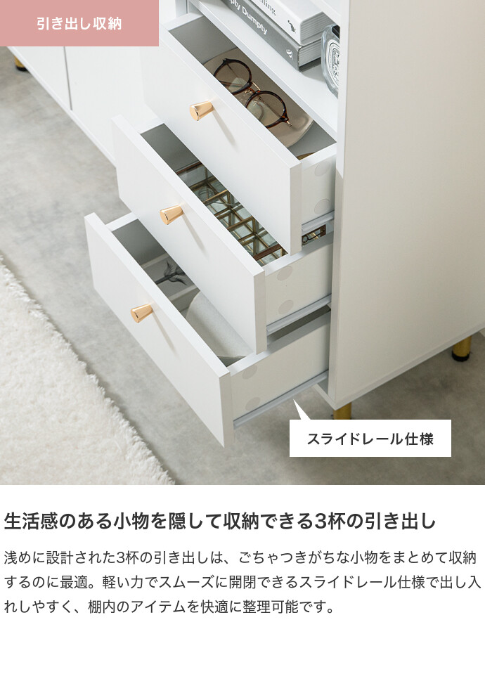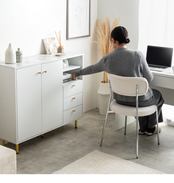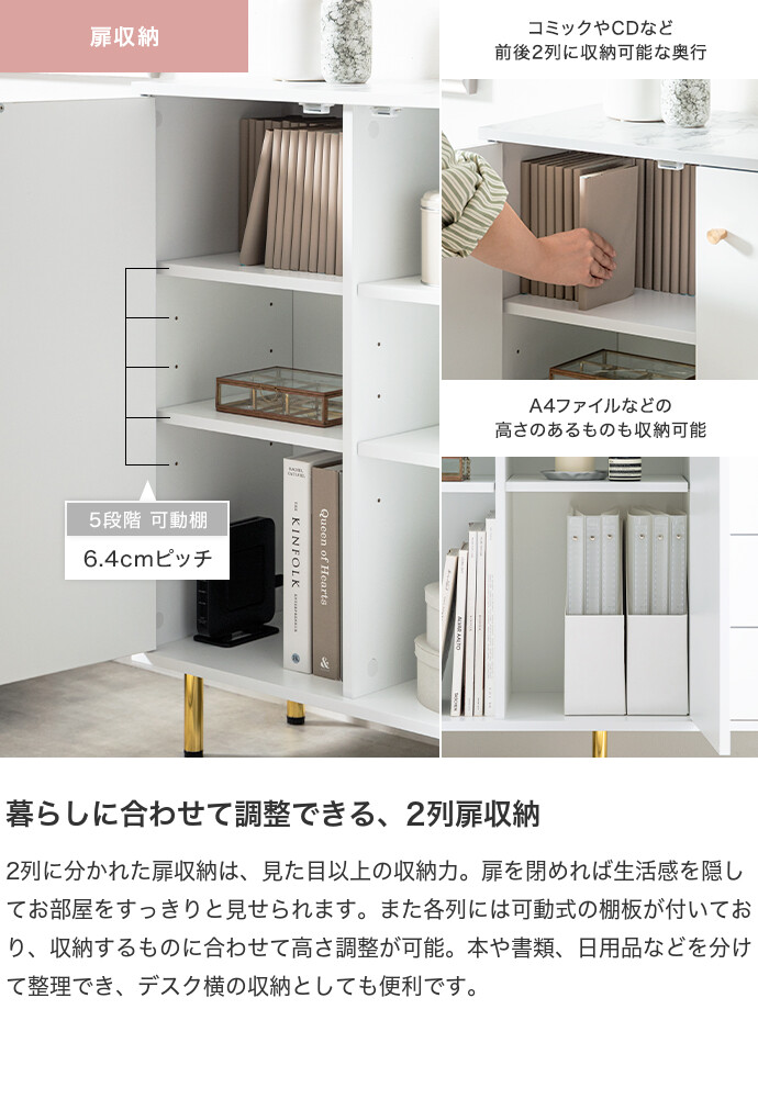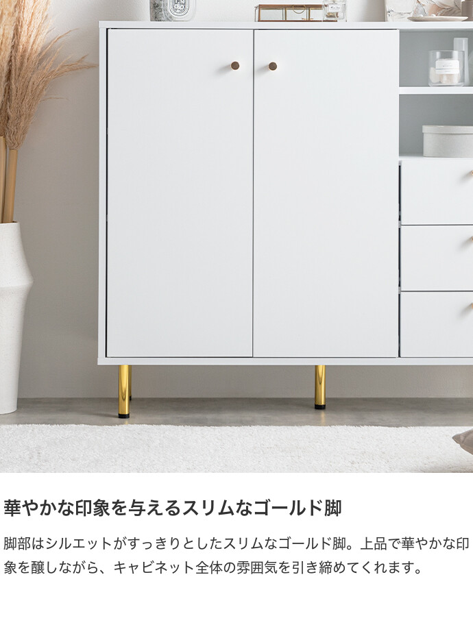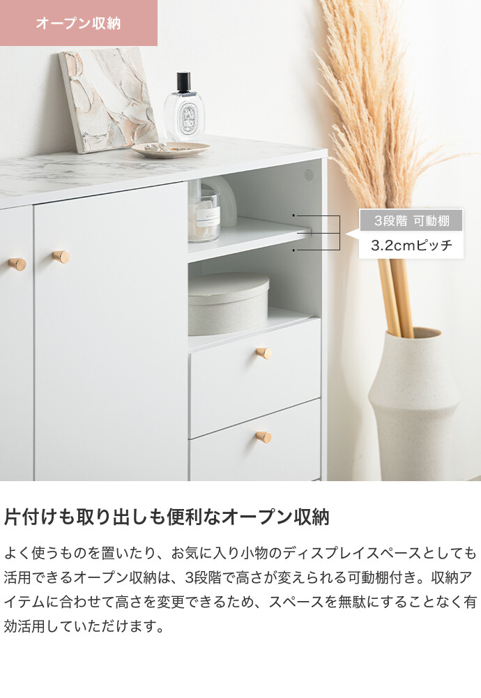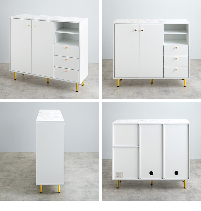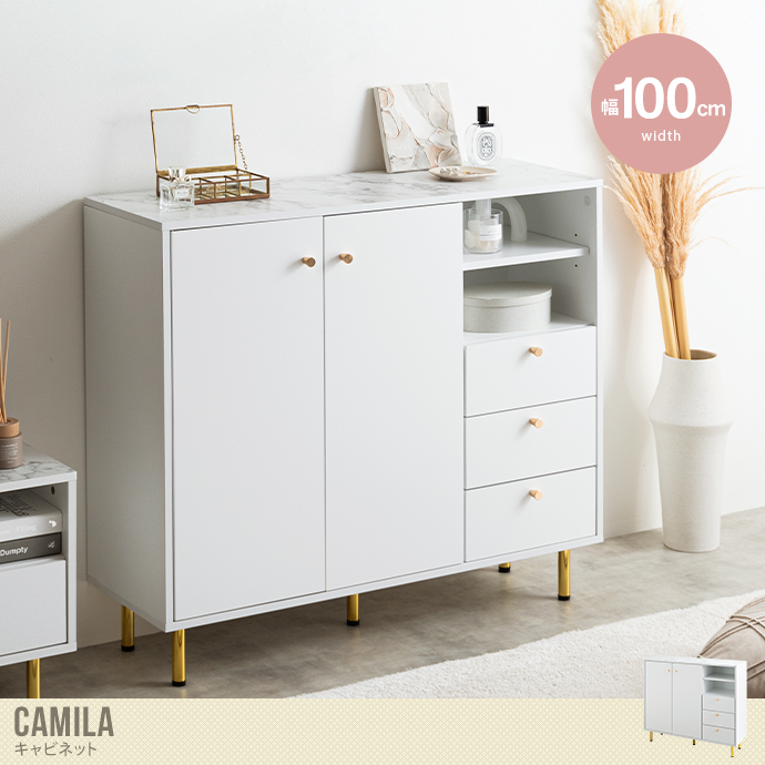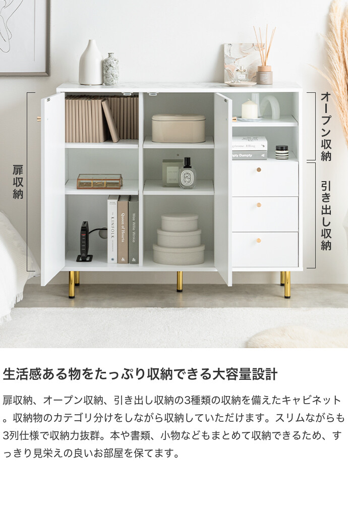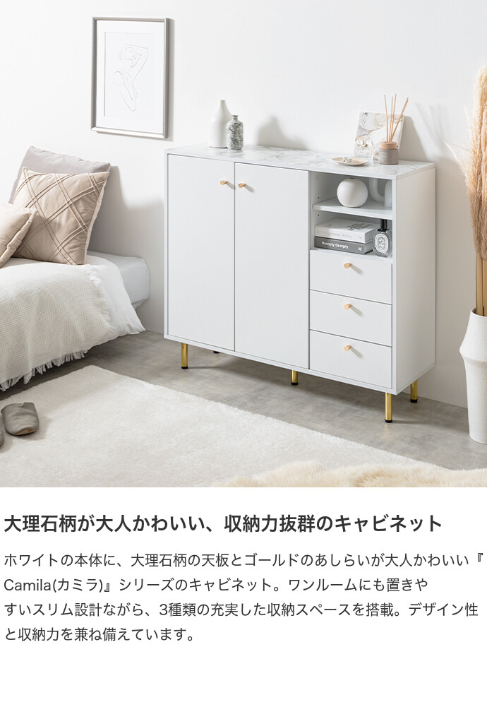 【送料無料】Camila カミラ 幅100 キャビネット チェスト ラック サイドボード シェルフ 大理石柄 おしゃれ おすすめ 安い 収納 大容量 引き出し 扉 可動棚 コンパクト スリム 可愛い かわいい 高級感 一人暮らし ワンルーム リビング ホワイト