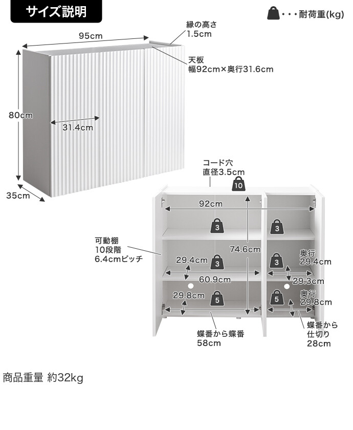 【耐荷重】天板:約10kg 、棚板:(各)約3kg、底板:(各)約5kg