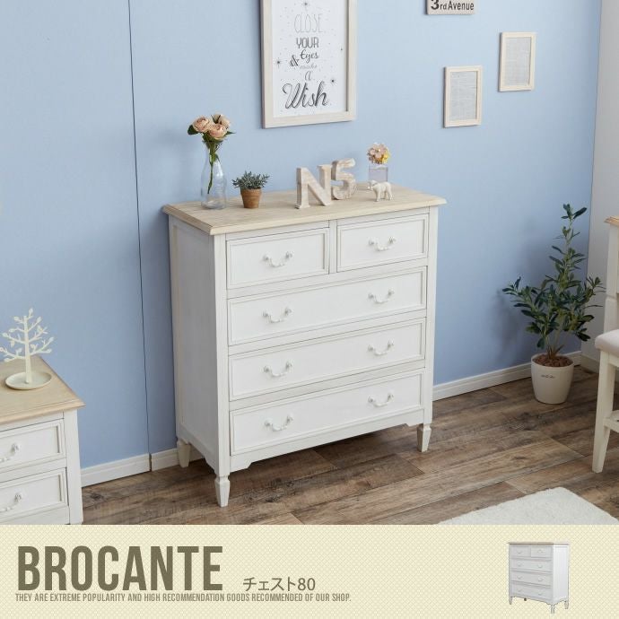 人気のシャビーシックデザインのチェスト収納「BROCANTE チェスト80」!女性の方のお部屋にピッタリです!