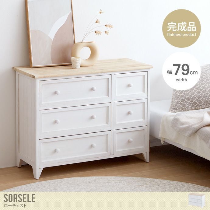 アンティーク塗装が施され、天然の木目の風合いを感じさせるコンパクトサイズの『Sorsele』幅79cmローチェスト。大小6杯の引き出しが付いており、季節やアイテムごとに衣類などの仕分けができます。また、コンパクト設計なので幅を取らず、一人暮らしやワンルームにもおすすめです。