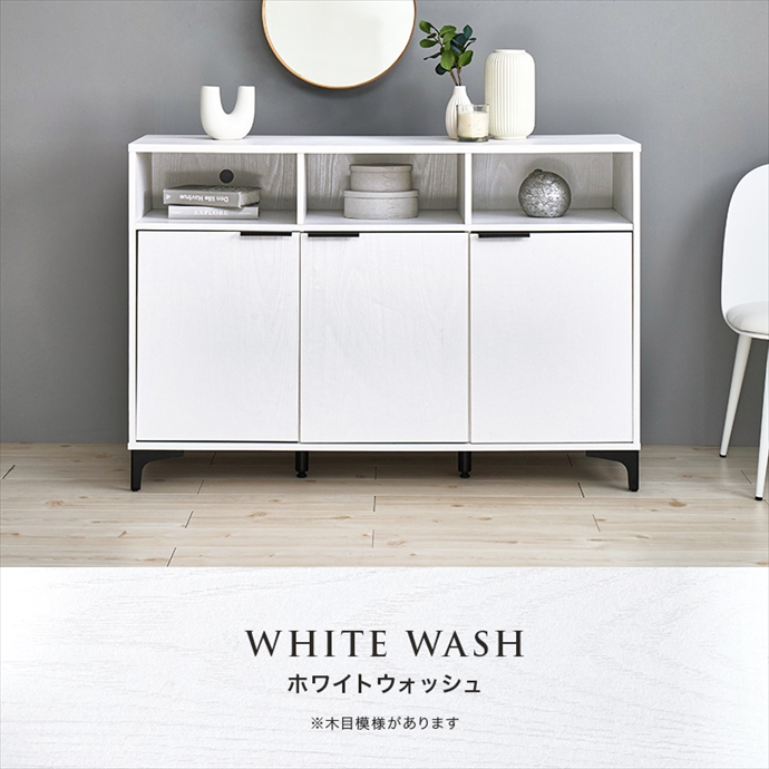 【送料無料】幅120 キャビネット サイドボード チェスト リビング収納 リビングボード 本棚 収納棚 ラック 収納 シェルフ おしゃれ おすすめ 安い 木製 木目調 扉付き 可動棚 大容量 コード穴 脚付き かっこいい ディスプレイ リビング ホワイトウォッシュ