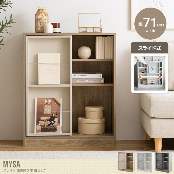 他の画像を見る 【送料無料】Mysa ミーサ 幅71 本棚 収納 ブックシェルフ オープンラック キャビネット 3段 薄型 木製 スリム コンパクト 一人暮らし 漫画 おもちゃ 子供 推し活 壁 大容量 ディスプレイ スライド棚 隠す ストーン 大理石柄 絵本 新書 CD ナチュラル 販売価格 ¥ 9,999 税込 送料込 カートに入れる お気に入りに登録する