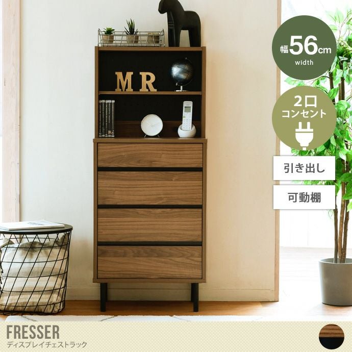 他の画像を見る 【送料無料】幅56 収納 チェスト 整理タンス キャビネット 洋服 衣類 ラック オープン サイドボード スリム 薄型 大容量 脚付き 4段 木製 アジャスター付き 引き出し 間仕切り 飾り棚 2口コンセント 薄い 可動棚 高さ調節 ディスプレイ ブラウン/ブラック 販売価格 ¥ 25,460 税込 送料込 カートに入れる お気に入りに登録する