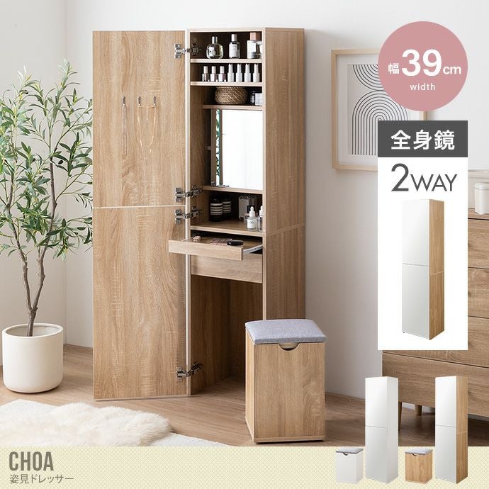 他の画像を見る 【送料無料】Choa チョア 幅39 ドレッサー 姿見ドレッサー 鏡台 化粧台 メイク台 おしゃれ おすすめ 安い 全身鏡 大容量収納 可愛い コンパクト 引き出し スライドテーブル スツール コスメ フック 身支度 一人暮らし ワンルーム 大人女子 ホワイト 販売価格 ¥ 23,999 税込 送料込 カートに入れる お気に入りに登録する