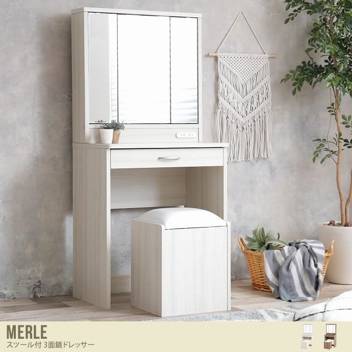 お部屋に1台あると便利なドレッサー&スツール。メイク道具をまとめて管理できる抜群の収納力!コンパクトサイズなのでお部屋の空いたスペースに収めることができます。ワンルームだけどドレッサーを置きたいという方にオススメ!毎日のメイクがスムーズに行えるようにサポートしてくれますよ♪明るいホワイトカラーと、落ち着いたブラウンカラーの2色をご用意しています。お部屋の雰囲気に合わせてお選びください。