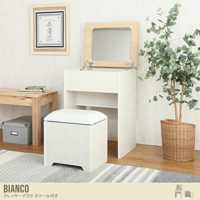【送料無料】ドレッサー 鏡台 ミラー 鏡 化粧台 化粧品 メイク 収納 メイク台 コスメ メイクボックス 北欧 おしゃれ おしゃれ家具 ナチュラル コンパクト ワンルーム シンプル スツール付き スツール付 ビアンコ ナチュラルホワイト