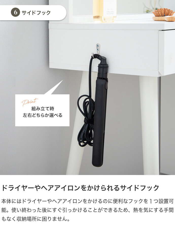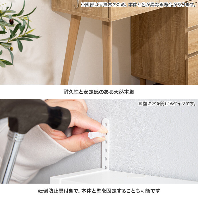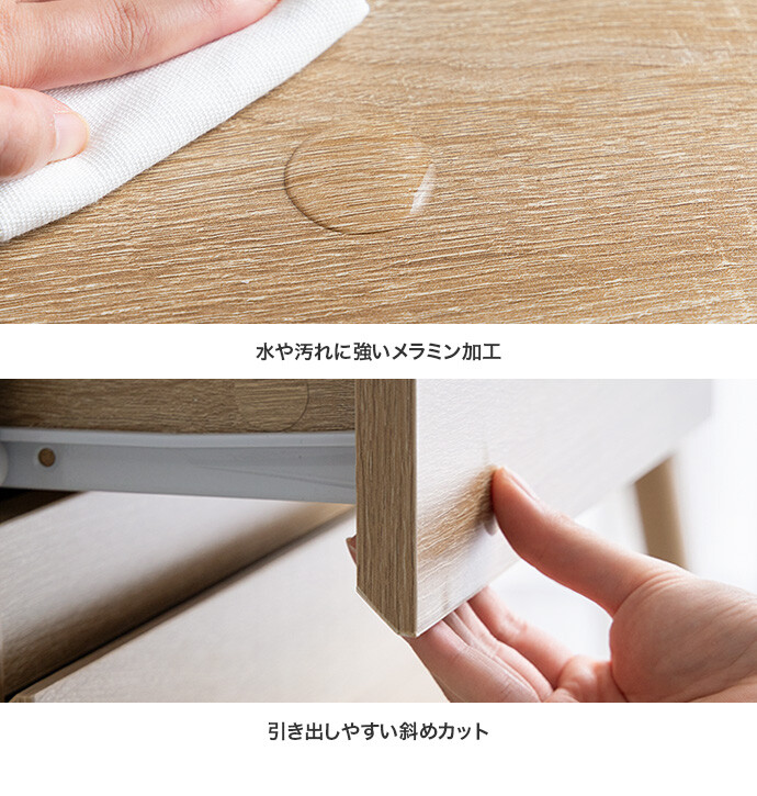【耐荷重】天板:約10kg、引き出し:各約3kg、サイドフック:約1kg
