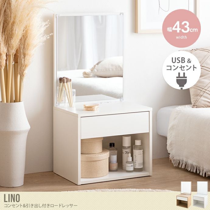 【送料無料】Lino リノ 幅43 ドレッサー ロードレッサー ドレッサーテーブル ドレッサーデスク ミニドレッサー メイク台 コスメ収納 コンパクト 収納 引き出し コンセント 省スペース 一人暮らし ワンルーム ナチュラル