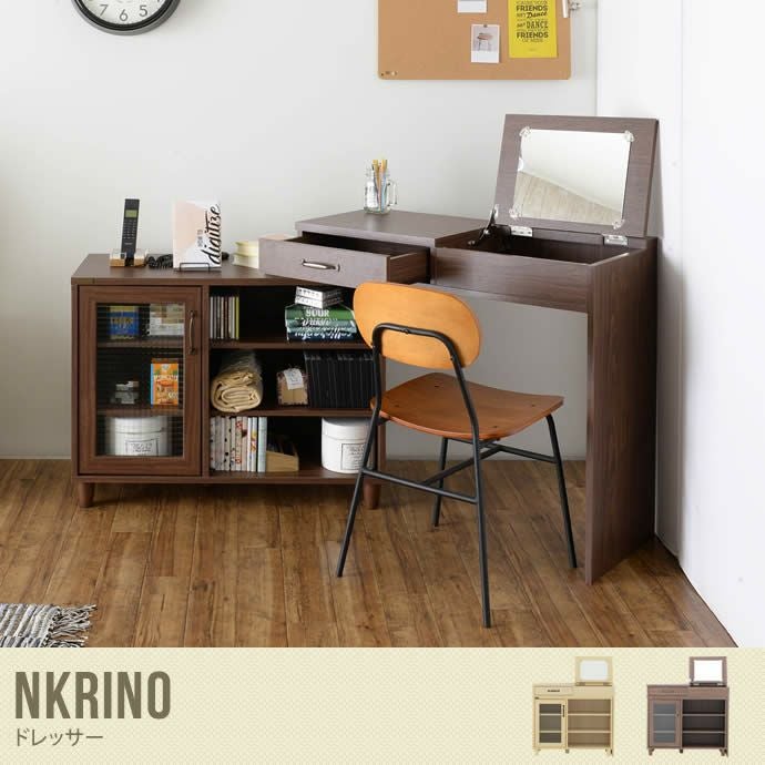 自然の木目と異素材が生み出す上品なデザインは、デスク・ドレッサーにもなる機能付きデスク。ワンルームやコンパクトなお部屋でもレイアウトを自由に変えられる便利アイテムです。たっぷり4ヶ所の収納スペースがあり、雑貨からメイク用品・ボトルまで幅広く収納可能。開閉式のミラーを閉じれば作業用デスクにも。オンオフどちらもこれ一つで過ごせます。