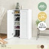 通気性の良いルーバー扉と背面の通気口で湿気や臭いがこもりにくいシューズラック『Faeto(ファエート)』。最大約21足も靴を収納可能。棚板から扉まで7cmと幅が開いているので、傘や杖も一緒に収納できます。また、背板に空いている通気口はコード穴にもなる為、置き場所に困るルーターまですっきり収納していただけます。カラーは3色用意していますので、お部屋のテイストにあったお好きなカラーをお選びください。