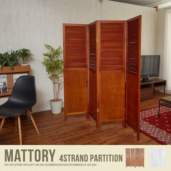 【送料無料】Mattory 4連パーテーション パーテーション 間仕切り 仕切り ルーバー シンプル ブラウン