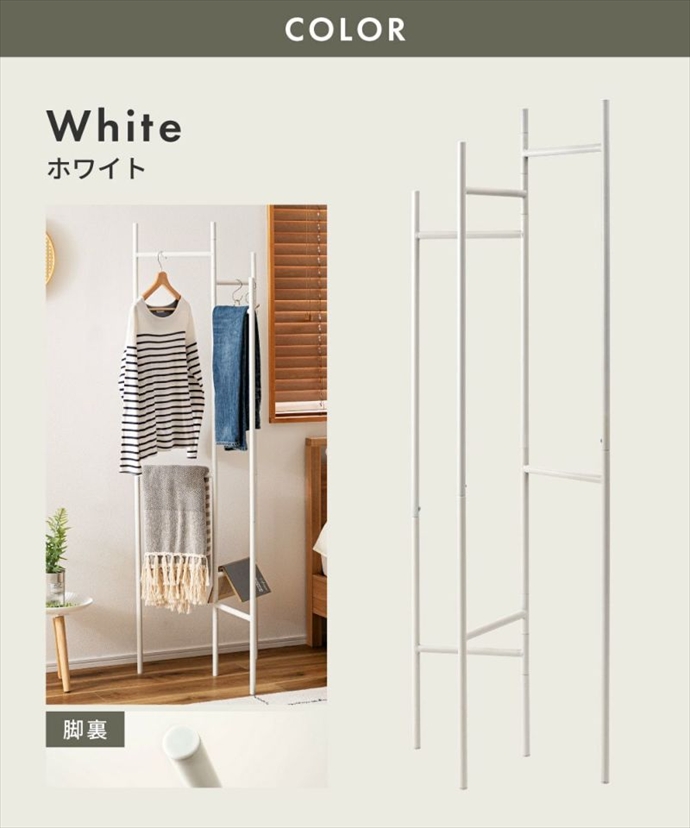 幅58 ハンガーラック ポールハンガー コートハンガー コート掛け 物干し 衣類収納 おしゃれ おすすめ 安い 折りたたみ 可動 360度回転 スリム 軽量 一人暮らし ワンルーム 洋服 衣類 カバン 帽子 コート 頑丈 リビング 寝室 ホワイト