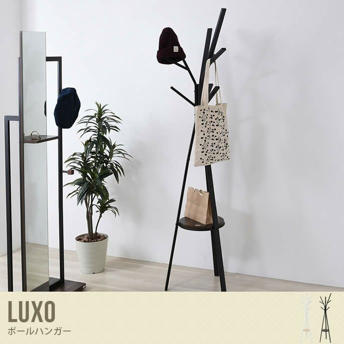 木目調とスチールが融合した、北欧風のデザイン家具「Luxo ポールハンガー」です。シンプルなデザインはお部屋に自然にマッチします。是非シリーズで一緒にお求めくださいませ。
