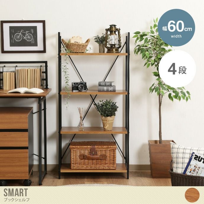 棚板の木目とブラックのスチールフレームがスッキリとしたデザインの『Smart(スマート)』シリーズから、ブックシェルフが登場しました。4段の収納スペースは、雑誌や小物だけでなくバッグやカゴもすっきり収納できて収納力抜群。ウッドとスチールの組み合わせは、落ち着いた雰囲気のお部屋にピッタリです。