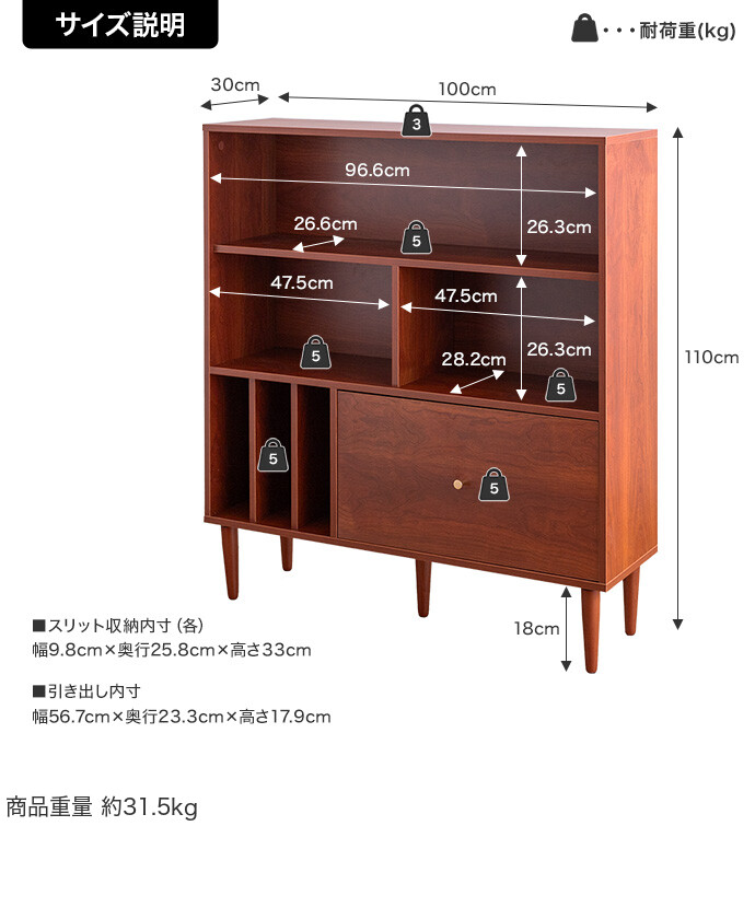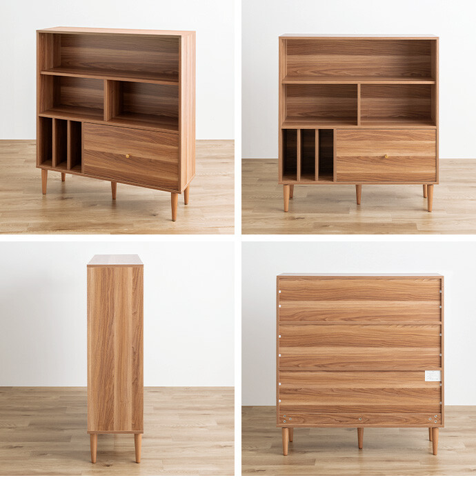 【送料無料】Lykke ルゲ 幅100 本棚 収納 シェルフ ラック チェスト オープン リビング キッチン 食器 ブック 洋服 木製 木目調 ディスプレイ スリム 引き出し ワンルーム 一人暮らし マガジン 韓国インテリア ミッドセンチュリー 北欧 ブラウン
