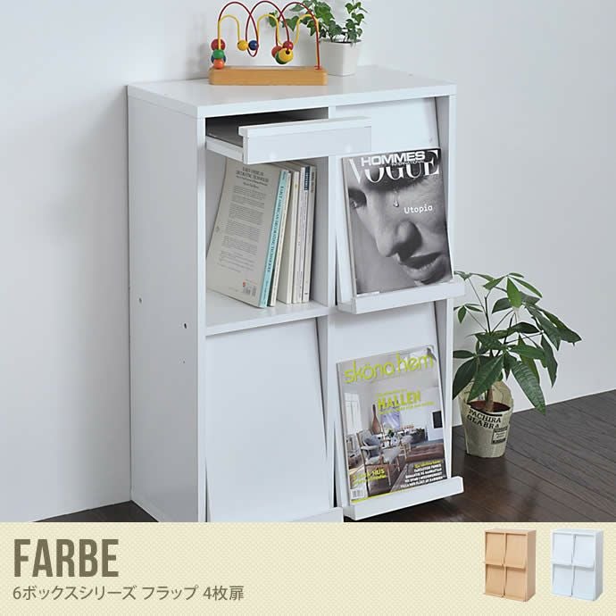すっきりとシンプルなブックシェルフ「Farbe 6ボックスシリーズ フラップ 4枚扉」です。お部屋をすっきりと見せてくれるのは、シンプルであるからこそ!是非シリーズで一緒にお求めくださいませ。