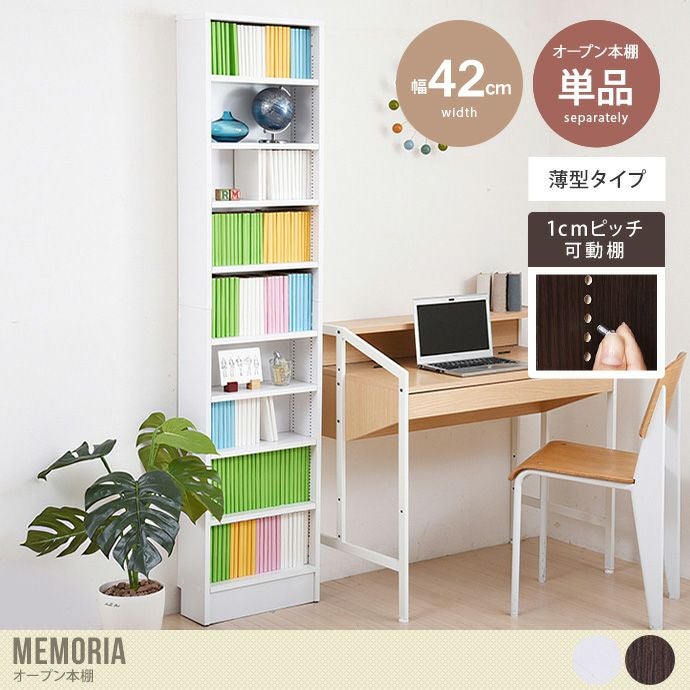 【送料無料】幅42 本棚 ブックシェルフ マガジンラック 飾り 収納ボックス カラー 食器 書棚 パーテーション 仕切り オープン 1cmピッチ 可動棚 9段 メモリア 雑誌 漫画 本 薄型 大容量 趣味部屋 ヲタ活 推し オフィス ホワイト