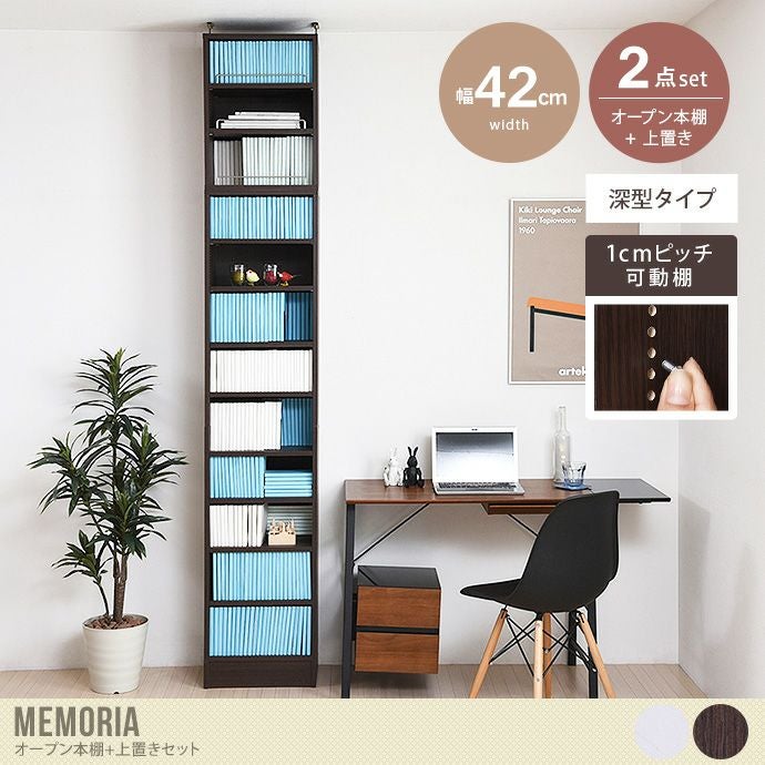 ※こちらのページでは、【Aタイプ(幅41.5cm)・深型タイプ・オープン本棚+上置きセット】をご購入いただけます。お間違いのないようご注意ください。
