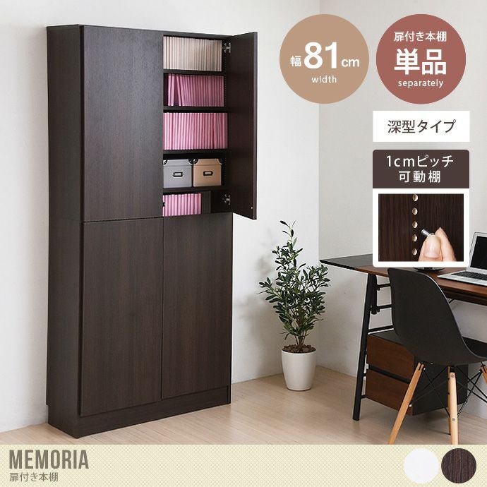 1cm単位で高さを調整できる可動棚で大量収納できる『Memoria(メモリア)』シリーズの扉付き本棚が登場しました。1cm単位で調整できる可動棚は高さの違う物もそれぞれぴったりな高さに変えられるので、無駄なく収納が可能。こちらは奥行31.5cmの深型タイプながらも、省スペースに置けて大容量収納ができるので、部屋の空間を有効活用が可能です。扉付きで隠す収納ができるので、インテリアを邪魔することなくスッキリと収納していただけます。