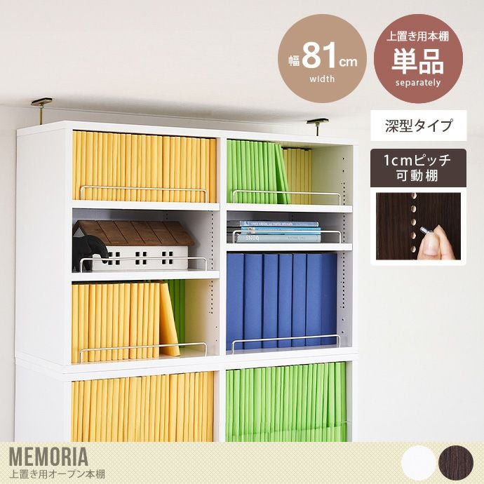 【送料無料】幅81 本棚 ブックシェルフ マガジンラック 飾り 収納ボックス カラー 食器 書棚 パーテーション 仕切り 単品 オープン 上置き用 メモリア 1cmピッチ 可動棚 つっぱり 深型 ホワイト