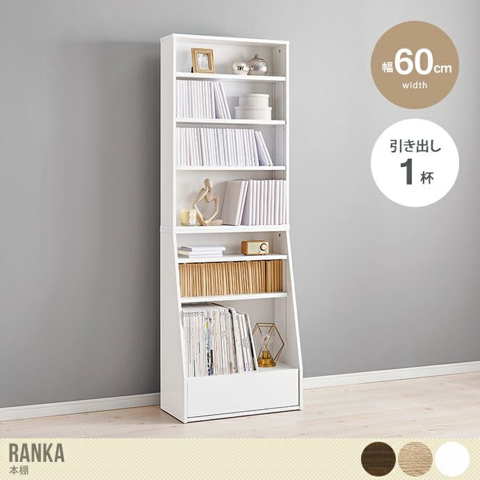 棚の高さを1cm刻みで調節できる本棚『Ranka(ランカ)』。可動式の棚板は上部は3枚、下部は2枚付いており上部は60段階、下部は40段階で1cmピッチの調節が可能。本の高さに合わせて調節ができるので、1つの本棚で文庫版からA5版までひとまとめに収納していただけます。さらに1番下には引き出しが1杯付いているので、本だけでなく日用品や小物などもすっきり収納することが可能です。カラーはブラウン、ナチュラル、ホワイトの3色をご用意。お部屋の雰囲気に合わせてお好きなカラーをお選びください。
