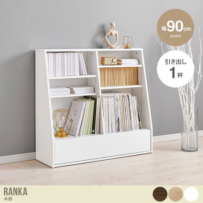 棚の高さを1cm刻みで調節できる本棚『Ranka(ランカ)』。可動式の棚板は4枚付いており40段階で1cmピッチの調節が可能。本の高さに合わせて調節ができるので、1つの本棚で文庫版からA5版までひとまとめに収納していただけます。さらに1番下には引き出しが1杯付いているので、本だけでなく日用品や小物などもすっきり収納することが可能です。カラーはブラウン、ナチュラル、ホワイトの3色をご用意。お部屋の雰囲気に合わせてお好きなカラーをお選びください。
