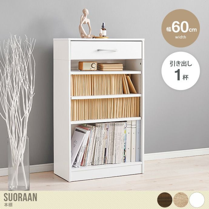 【送料無料】幅60 収納 本棚 書棚 ブックラック シェルフ 棚 本収納 引き出し付き 大容量 1cmピッチ 可動棚 書籍 単行本 コミック 漫画 整理 コンパクト リビング 寝室 子供部屋 ブラウン