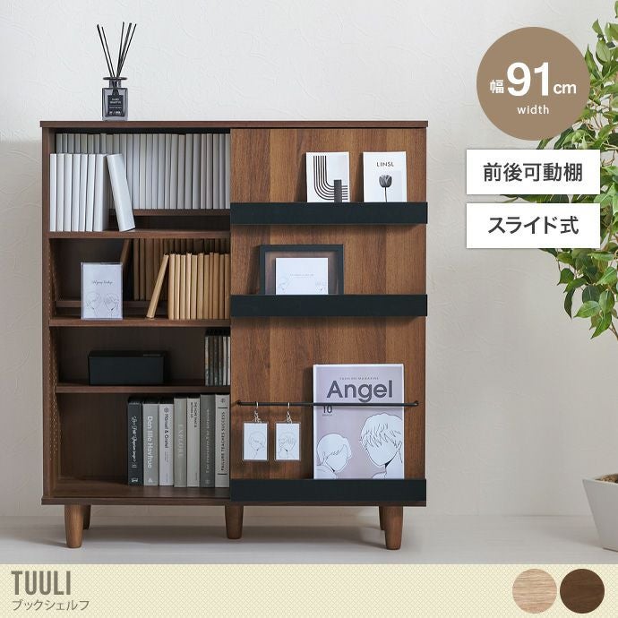 見せる収納ができる『Tuuli(トゥーリ)』ブックシェルフが登場しました。片面は雑誌やポストカードなどを飾れるスライド扉付き。下段にはバーが付いているため、雑誌を立てて飾ることができ、S字フックを使ってキーホルダーなども掛けることが可能です。また棚は収納するものに合わせて高さ調節ができる前後可動式になっており、1.6cmピッチで高さ調節が可能。前後が分かれているため、段差をつけることで後ろにある本もひと目で確認していただけます。
