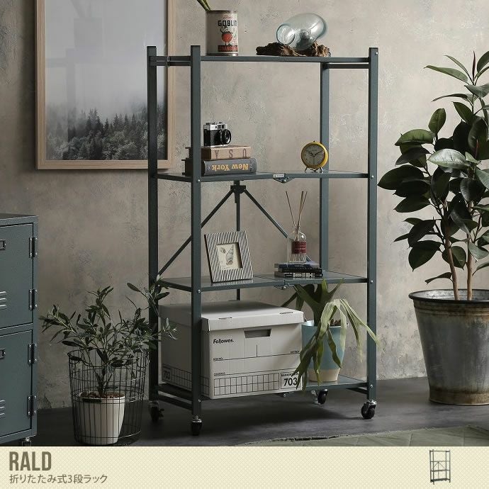 【送料無料】rald ラルド ラック 折りたたみ 折りたたみ式 コンパクト 省スペース ヴィンテージ風 メンズライク おしゃれ ハンマートーン ヴィンテージ ヴィンテージデザイン 3段ラック グリーン グリーン