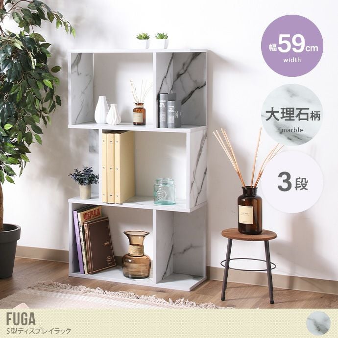 幅59 シェルフ ディスプレイラック 本棚 書棚 ラック 間仕切り 棚 オープンラック キャビネット S字 コレクション 収納 リビング 大理石柄 モノクロ 3段 ブックシェルフ パーテーション おしゃれ 人気 新生活 一人暮らし ワンルーム 石 ストーン ホワイトインテリア ホワイト