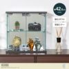 【送料無料】幅42.5 コレクションケース 卓上 コーナー型 おしゃれ おすすめ ディスプレイ収納 ショーケース シェルフ ガラス棚 可動棚 コンパクト スリム 背面ミラー 鏡 ラック フィギュア 推し活 棚上 テーブル アクスタ グッズ ブラック