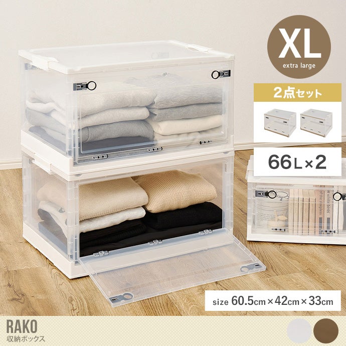 幅60.5 収納 カラーボックス 収納ボックス 収納ケース 衣類収納 コンテナ おしゃれ おすすめ 安い 2個セット 折りたたみ 66L ふた付き キャスター付き スタッキング 押し入れ ベッド下 大容量 一人暮らし クリア