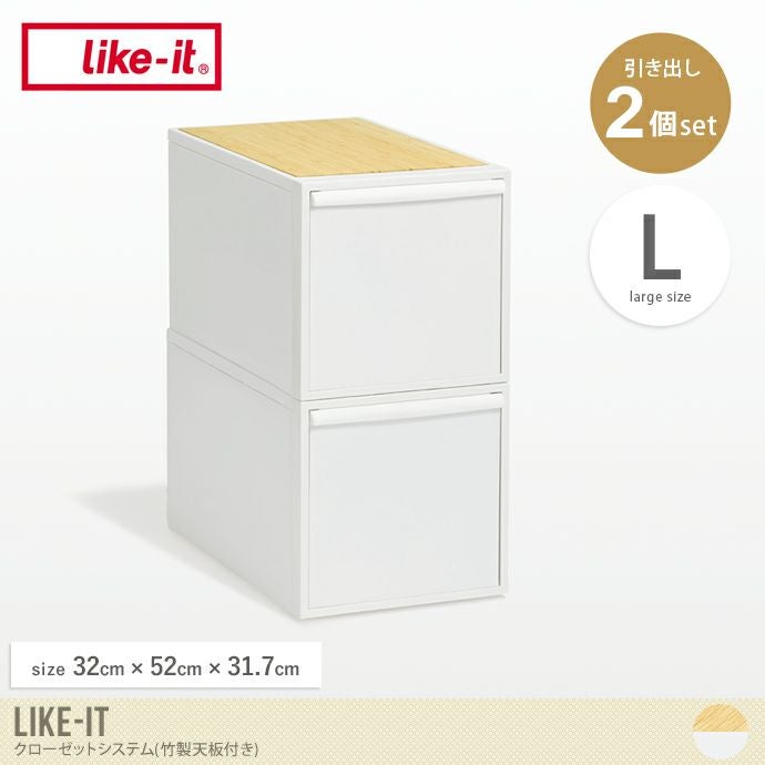 【送料無料】幅32 収納ケース 引き出し カラーボックス 収納ボックス 衣装ケース クローゼットシステム 衣類収納 おしゃれ おすすめ 安い 2個セット 天板付き 竹製天板 2段 ライクイット スタッキング 積み重ね可能 軽量 服 衣類 押入れ ホワイト
