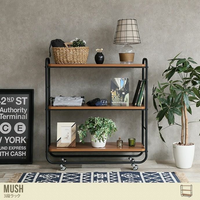 異素材ミックスデザインの『Mush』3段ラックの登場です。カジュアルからカッコイイスタイルまで幅広くマッチ! コンパクト設計ですので、ワンルームの方でも圧迫感なく配置いただけます。 お気に入りの雑貨を並べたり、衣類を収納したり使い方はさまざまですよ。背板がない分、開放的なお部屋が実現します。スペースを仕切りたいときに間仕切りとしてもお使いいただけますよ。