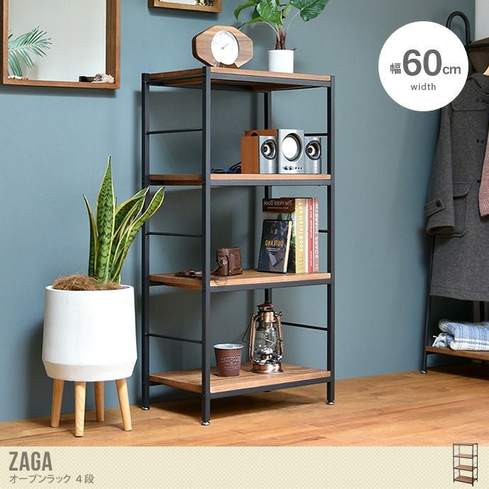 【送料無料】幅60cm ラック スチールラック オープンラック ディスプレイラック ウッドシェルフ 4段 天然木 桐 古木風 スチール 棚 収納 高さ116cm ブラウン