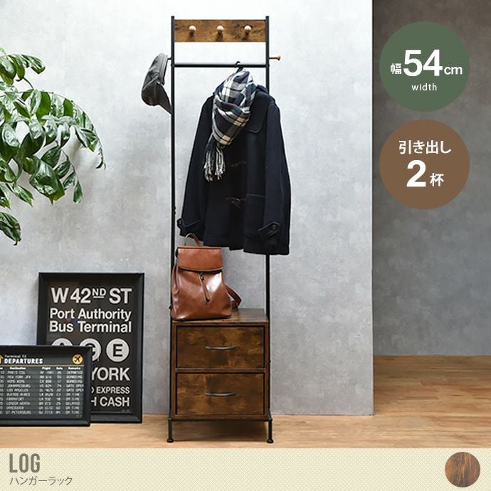 ヴィンテージ感のあるデザインのが特徴の『Log(ログ)』シリーズのハンガーラックが登場しました。マットなアイアンフレームと長年使われてきたような古材風のウッドが、インダストリアルな雰囲気のあるデザイン。フロントとサイドにはフックがついており、ハンガーポールもあるのでコートや洋服だけでなく帽子やバッグなどもかけて収納が可能です。深めの引き出しが2杯ついているので生活感のでやすいスリッパなどの小物を隠してしまうこともできます。