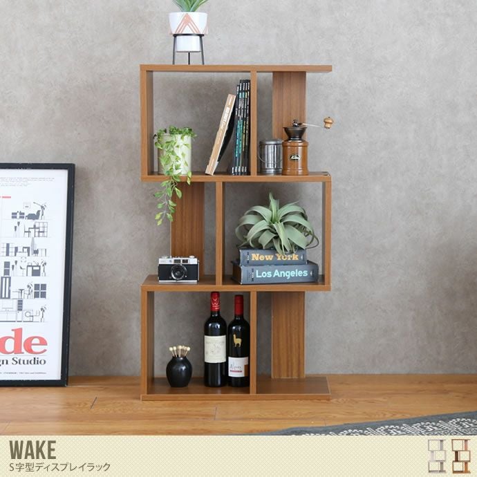背板がない開放的なデザインでありながら、どっしりと安定感のある『Wake(ウェイク)』S字型ディスプレイラックです。シンプルで落ち着きのあるデザインで、どんなインテリアにも馴染んでくれます。お気に入りの小物や雑誌などをおしゃれに収納できるので、まるでショップのようなディスプレイが実現します。また背板がなく開放的で、お部屋の間仕切りとしても使え、おしゃれな雰囲気を演出してくれますよ♪