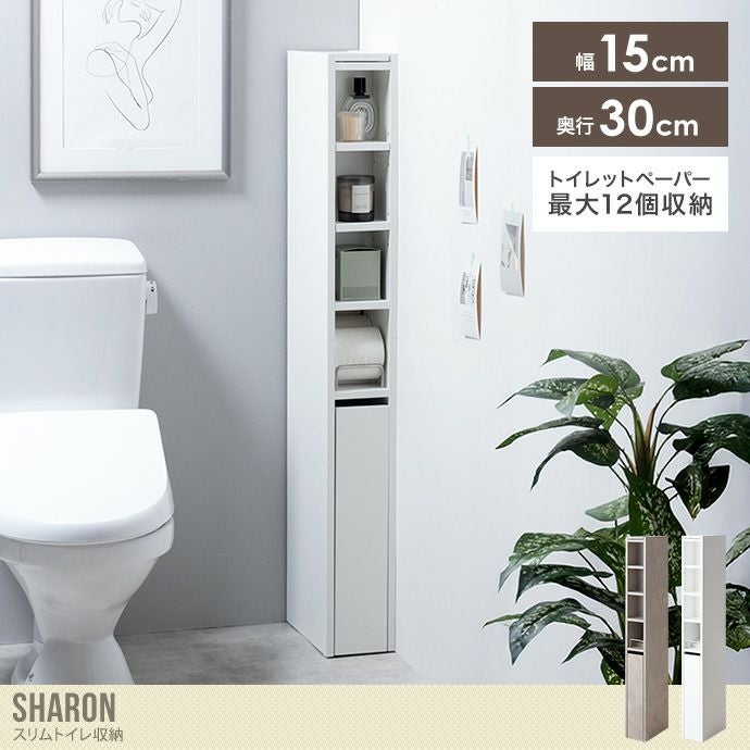 【送料無料】Sharon シャロン 幅15 トイレ収納 スリム トイレラック 薄型 15cm 引き出し付き すき間収納ラック おしゃれ おすすめ 安い トイレットペーパー 12ロール キャスター付き サニタリー 省スペース トイレブラシ収納 収納棚 ストーン