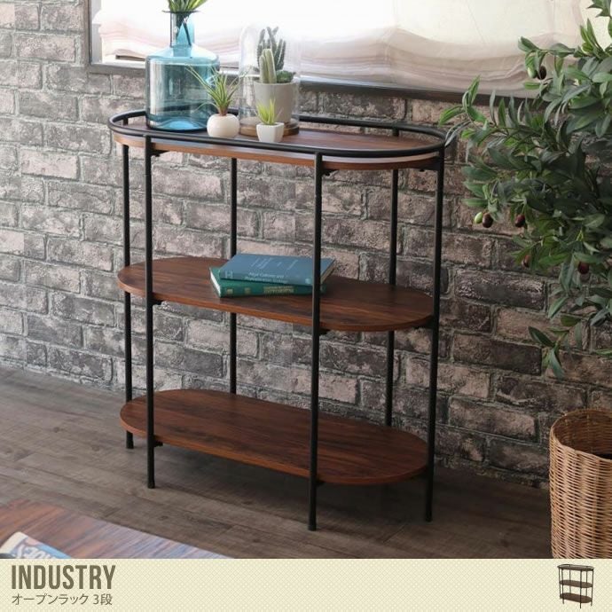モダンテイストやヴィンテージ感のある部屋つくりに、ひと役買ってくれる楕円形の形をした3段タイプのオープンラック『Industry(インダストリー)』が登場。細身のスチールフレームと美しい木目調の棚板で、小物などをオシャレに収納していただけます。上段・中段・下段の各段の間は約33cmの高さがあり、雑多になりがちな小物類もたっぷり収納していただけます。背面と側面が開いたオープンデザインなので、窓際や壁面に置いても光を通し視線を遮らないので圧迫感を与えません。細身のブラックフレーム×木目調のウッドデザインでお部屋を引き締め、お気に入りアイテムが映えるディスプレイ収納をお楽しみいただけます。