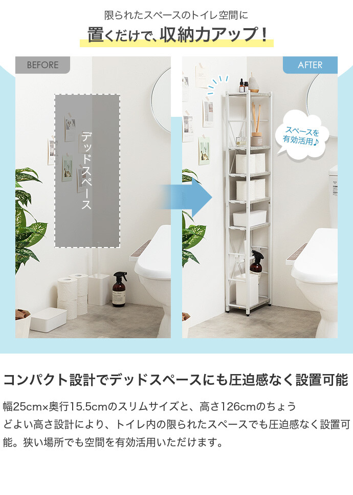 【送料無料】幅25 ラック トイレラック 収納棚 収納ラック オープンラック コーナー おしゃれ おすすめ 安い 可動棚 コンパクト スリム 省スペース ハイタイプ トイレットペーパー トイレ収納 隙間収納 ブラシ サニタリー ホワイト