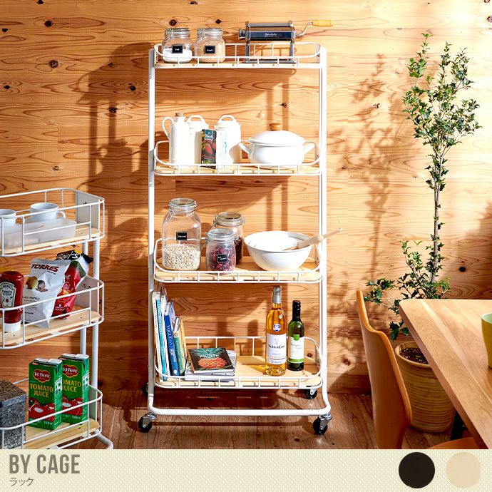 天然目とスチールフレームがナチュラルテイストなラック。キッチンやリビングなど場所を選ばずどんなインテリアにも合います。