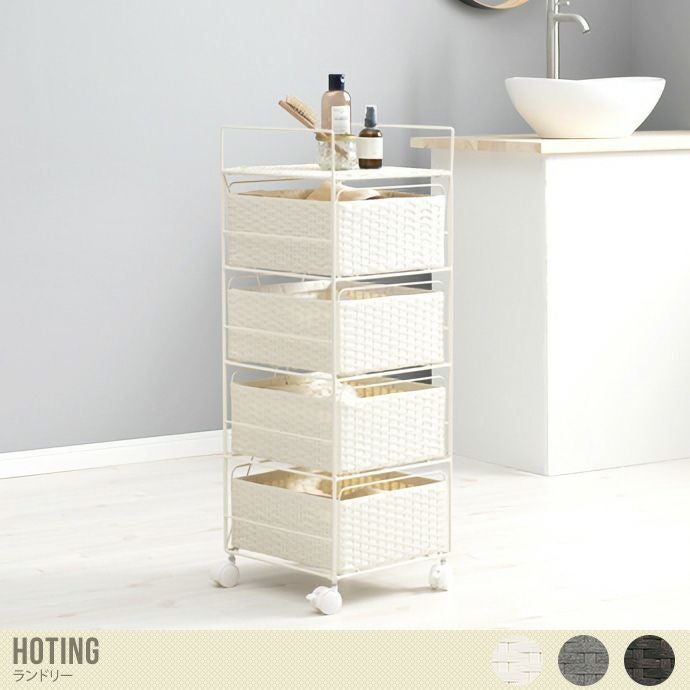 取っ手を持って引出しを運べるので洗濯物の収納や片付けが効率的に。樹脂製なのでお手入れしやすいランドリー収納です。