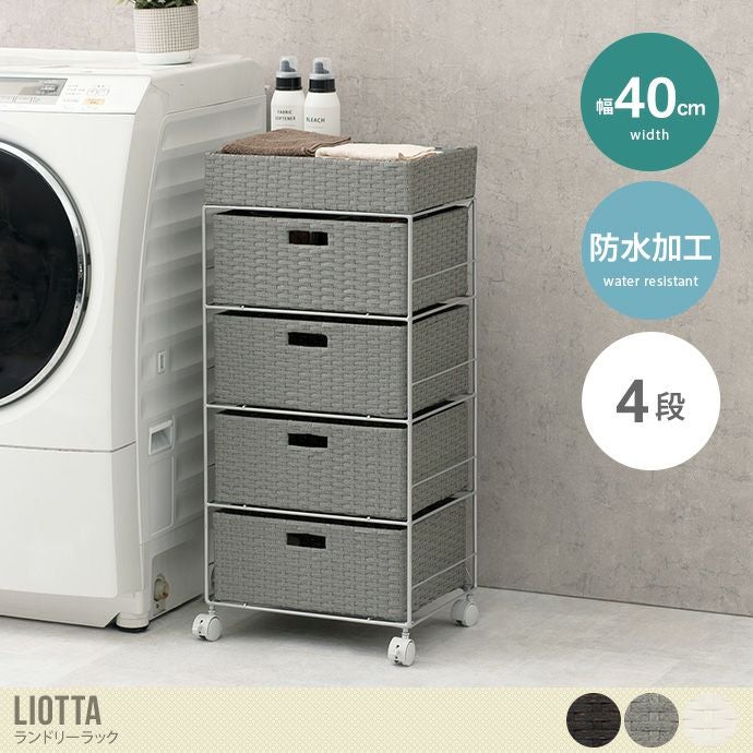 隙間収納ですっきりと使いやすい『Liotta(リオッタ)』シリーズから、幅40.5cmのランドリーラックが登場しました。便利な天板と引き出しが4杯ついているので、ドライヤーや洗剤など使用頻度の高いものは天板へ収納してサッと取り出すことができます。ラタン調の編み込みデザインは通気性だけでなく、防水加工を施しているので、濡れても拭くだけで簡単にお手入れができます。キャスター付きなので移動も楽々。コンパクトなサイズ感で、ワンルームでも圧迫感なくお使いいただけます。